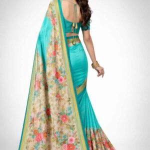 Turquoise Floral Printed Daily Wear Saree with Soft Fabric | Lightweight & Comfortable Women Saree CJ Dress