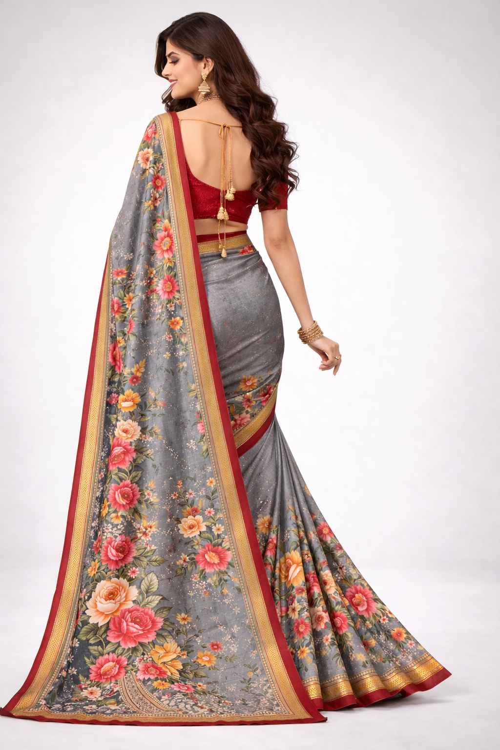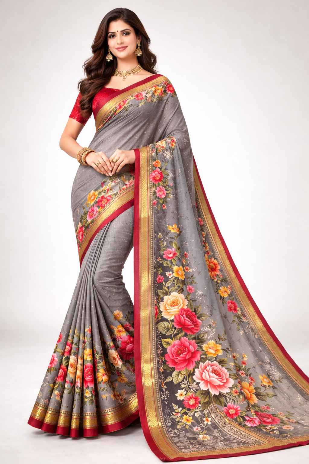 Grey Floral Printed Daily Wear Saree for Women with Soft Fabric & Elegant Border CJ Dress
