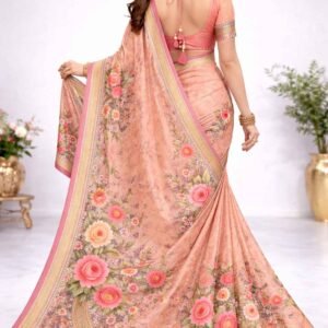 Peach Floral Printed Daily Wear Saree for Women with Soft Fabric & Elegant Border CJ Dress