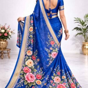 Royal Blue Floral Printed Daily Wear Saree for Women with Soft Fabric & Elegant Border CJ Dress