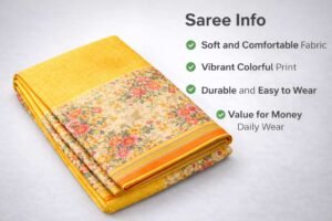 This saree is ideal for women who prefer lightweight, comfortable clothing with elegant designs. The floral print adds charm while the soft fabric keeps you comfortable throughout the day. It suits housewives, working women, and anyone searching for reliable daily wear sarees.