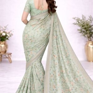 Mint Green Small Floral Printed Daily Wear Saree for Women with Soft Fabric & Lightweight Comfort CJ Dress