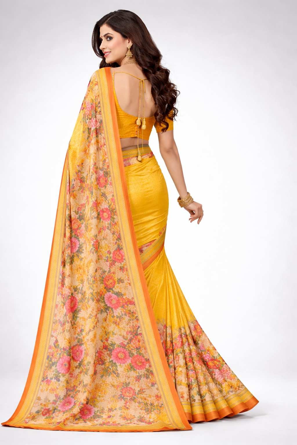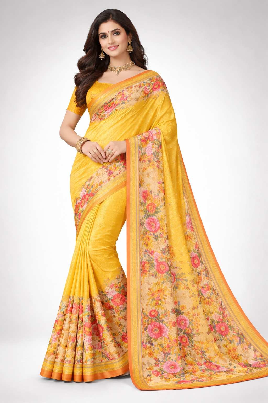 Yellow Floral Printed Daily Wear Saree for Women with Soft Fabric & Lightweight Comfort CJ Dress